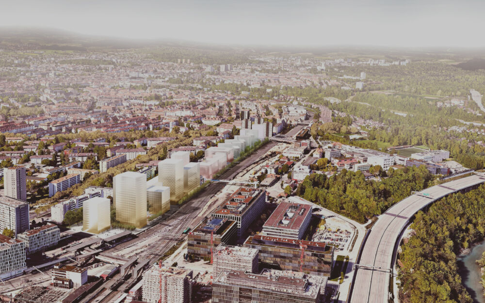 Die Projektverfassenden nähern sich der Aufgabenstellung mit intelligenter Skepsis. Sie halten fest, dass es sich einzig zum Zeitpunkt der Planung um ein zusammenhängendes Areal handeln könne. Darüber hinaus würden Faktoren wie die Geometrie des Entwicklungsgebiets, die etappierte Umsetzung und die unterschiedlichen Bauträgerschaften sowie die unmittelbare städtebauliche Nachbarschaft prägender sein als ein kohärentes Gesamtbild. Folgerichtig werden verschiedene «kleine Quartiere» mit starken eigenen Charakteristika vorgeschlagen. Die Gliederung der Bebauung entlang der Wankdorffeldstrasse wird auf die jeweiligen Nachbarräume bezogen und vernetzt gedacht.